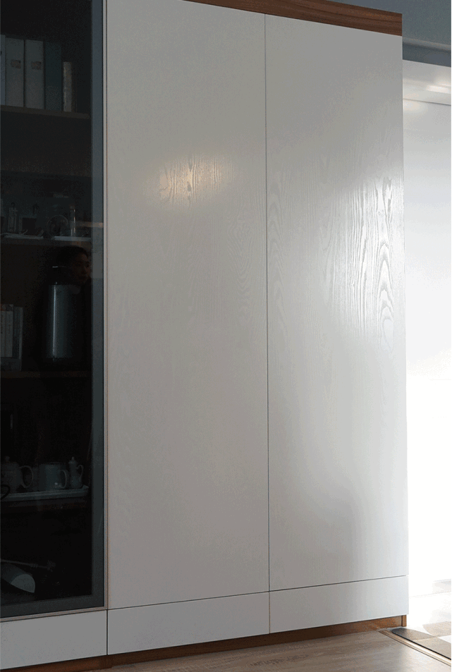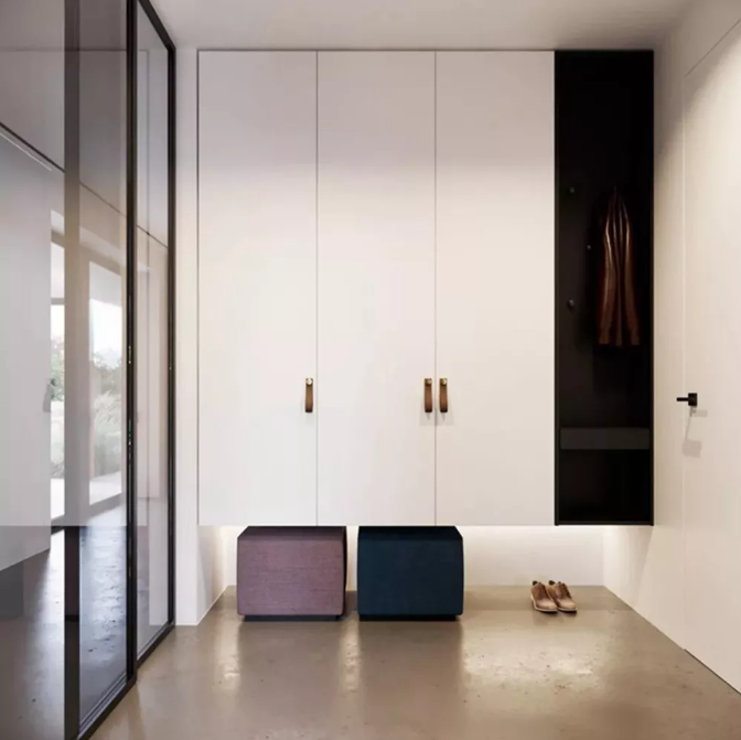 3、鞋柜門可采用按壓式的起彈器,表面看不出門把手,只要輕輕一按就能開門,使用更方便。