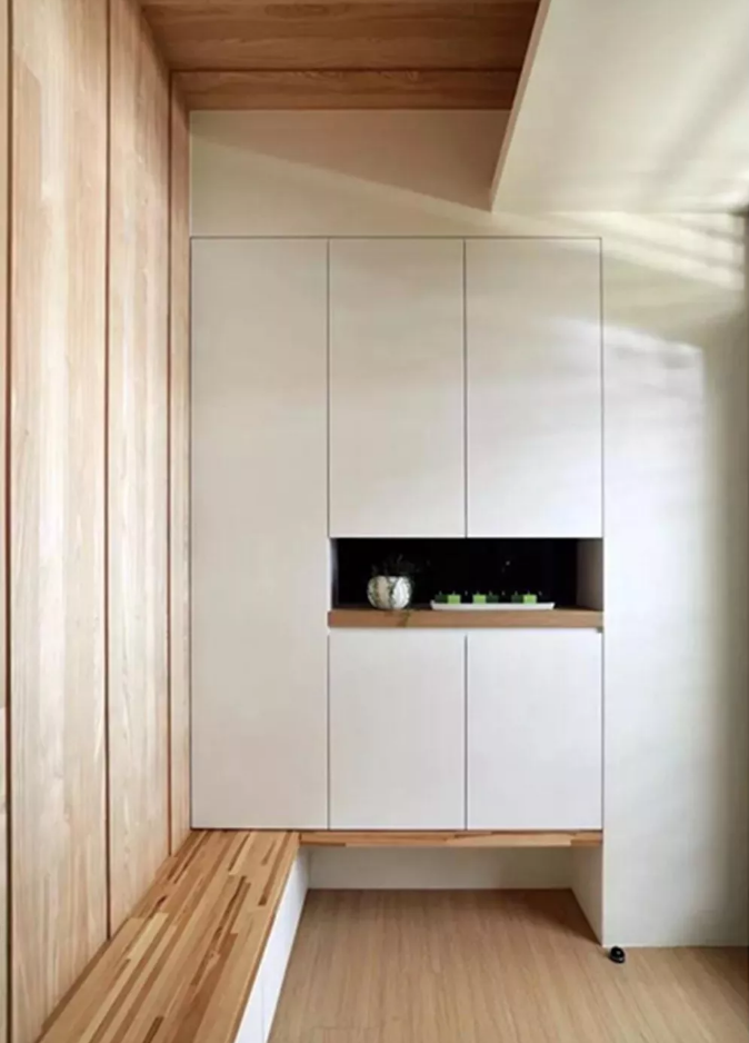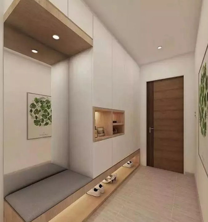 早幾年裝修,人們還沒有太多定制柜的概念,通常就在門廳處設(shè)置一個(gè)小鞋柜,解決進(jìn)出戶的藏鞋需求,有的是木工打制,有的是家居賣場(chǎng)買來的成品柜。例如這種。↓↓↓