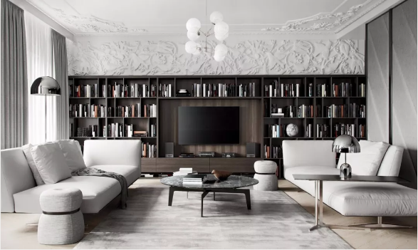 對(duì)于愛(ài)看書(shū)的家庭而言,沒(méi)有專屬閱讀區(qū)的家就無(wú)異于失去了“靈魂”。不過(guò)想要完成大規(guī)模地藏書(shū),其實(shí)也并不僅僅局限于傳統(tǒng)的書(shū)房,客廳電視墻就是一個(gè)非常不錯(cuò)的選擇。