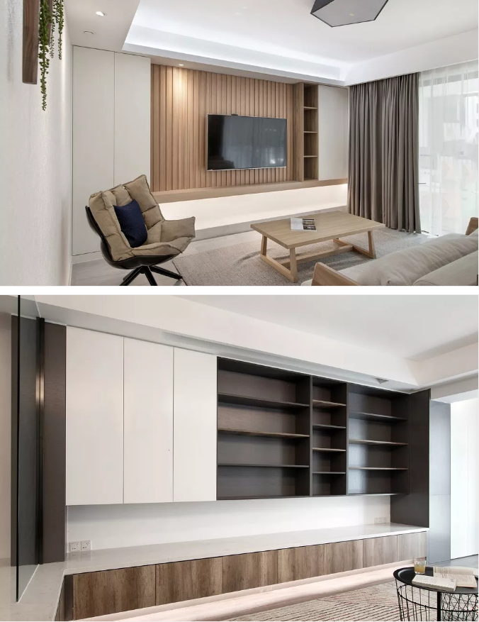 不過(guò)在設(shè)計(jì)的時(shí)候最好不要太滿,讓柜子和柜子之間保有一定的留白,不至于占據(jù)整個(gè)墻面,就能讓空間顯得更加和諧。