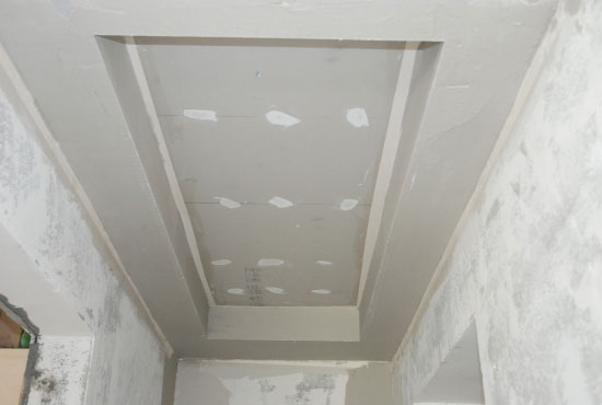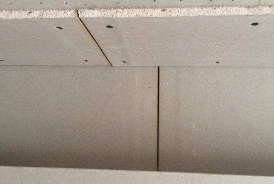 石膏板吊頂保持順暢,其間板縫應(yīng)完全錯(cuò)開(kāi)5-8mm。