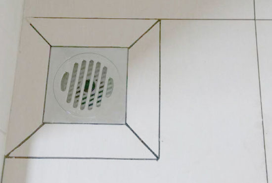 地漏與地磚之間粘貼牢固,無(wú)裂縫掉角,留邊寬度一致。